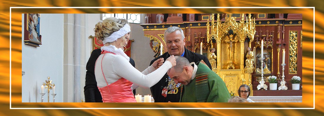 Zum Abschluss der Feier erhielten Pfarrer Dr. Waldemar Hadullaund Gemeindereferent Wolfgang Moritz stellvertretend für das ganze Gottesdienstteam einen Faschingsorden.
