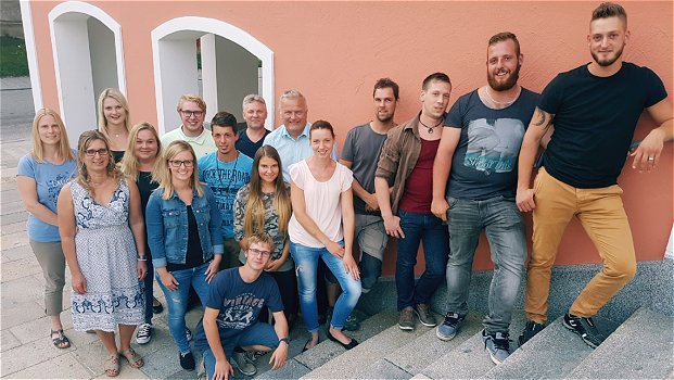 Treppe von unten nach oben: Sebastian Grünleitner, Maximilian Vogel, Florian Feldmaier